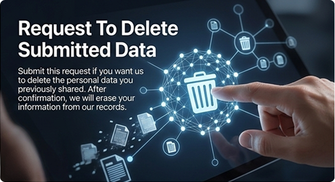 Once your request is processed, we will permanently clear your details from our active servers and send a final confirmation. A minimal record is maintained only where strictly necessary for legal security standards or tax regulations.